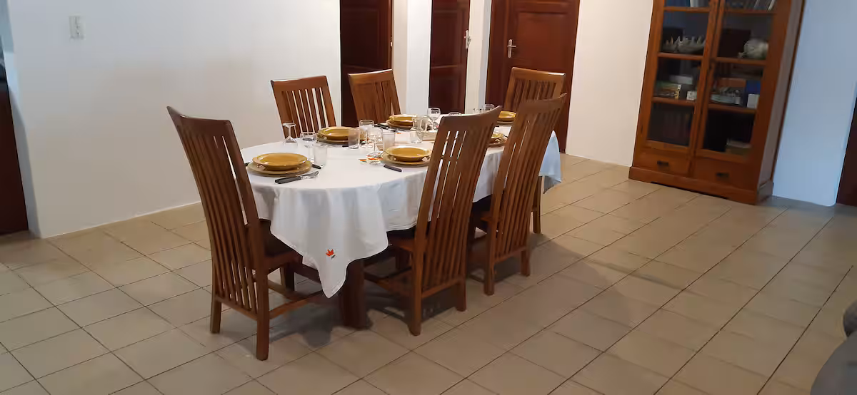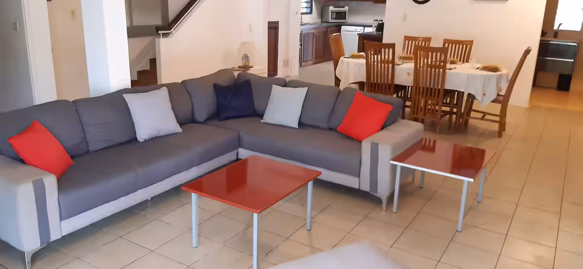 Située dans un lotissement privé paisible et sécurisé, à quelques minutes seulement des axes routiers, des centres d’affaires du Port et des commodités locales, cette magnifique villa F5 entièrement rénovée vous accueille dans un cadre chic et convivial. Conçue pour offrir une expérience de détente absolue, elle allie le charme de l’île à un confort moderne haut de gamme.